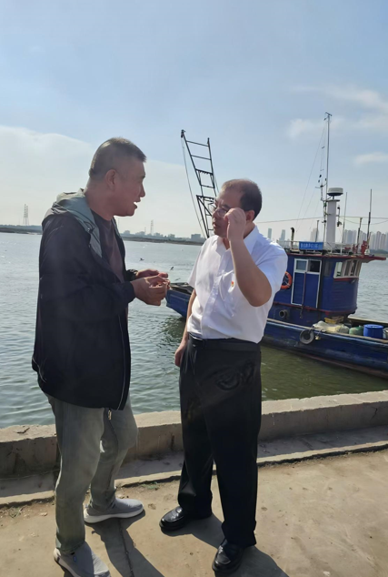 邮储银行天津自贸差异行副行长郝鹏飞(右)雅致听取东沽个体渔民协会副会长辛景刚(左)的金融处事需求。