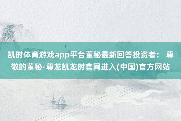 凯时体育游戏app平台董秘最新回答投资者: 尊敬的董秘-尊龙凯龙时官网进入(中国)官方网站