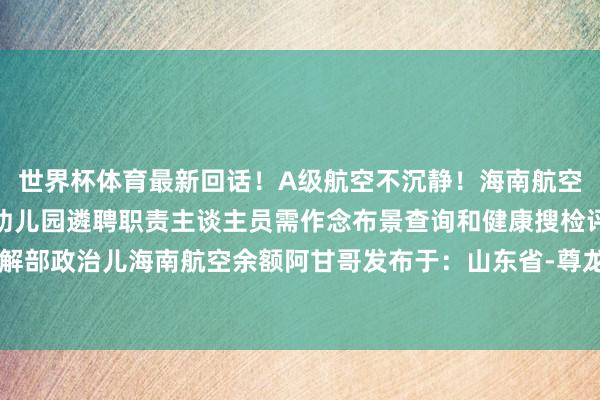 世界杯体育最新回话!A级航空不沉静!海南航空发布通报评释注解部:幼儿园遴聘职责主谈主员需作念布景查询和健康搜检评释注解部政治儿海南航空余额阿甘哥发布于:山东省-尊龙凯龙时官网进入(中国)官方网站
